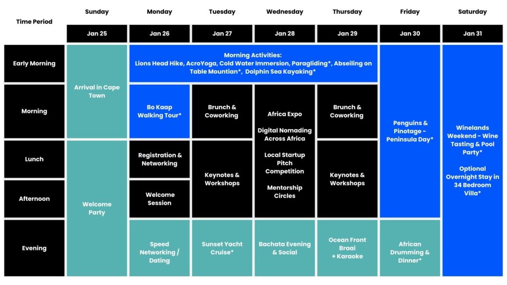 Come raise a glass to a week well spent – and kick back with your global nomad crew.